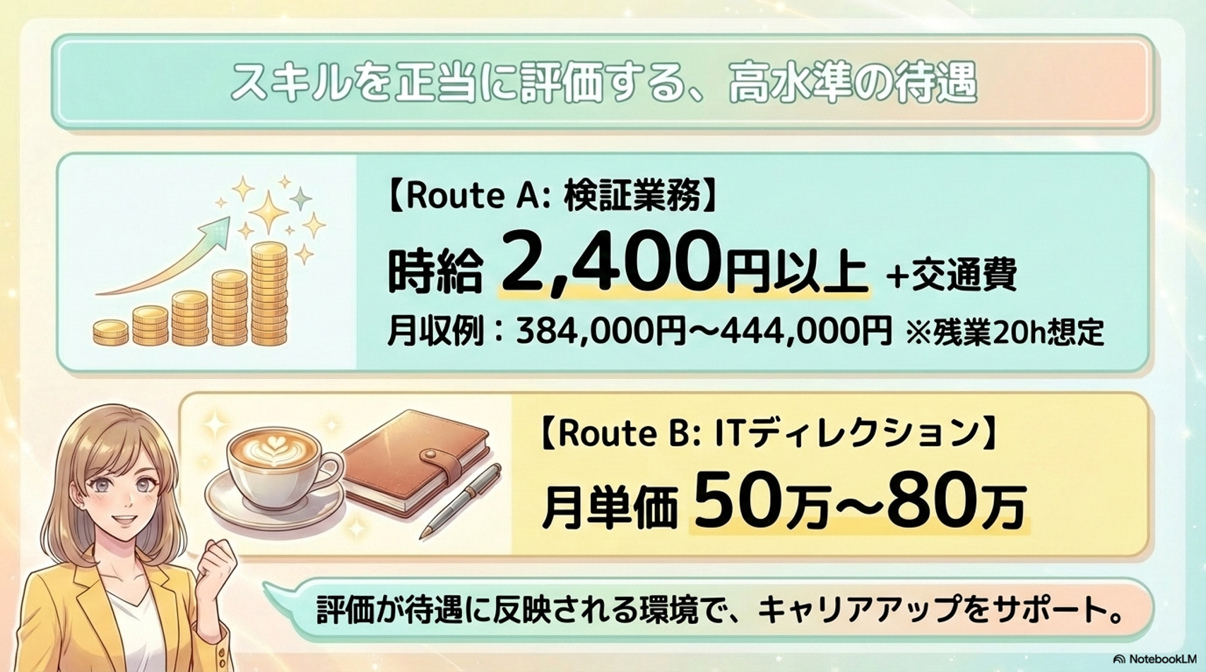 時給2,400円以上、または月単価50万〜80万円という高水準の待遇。
